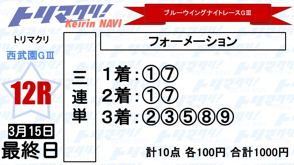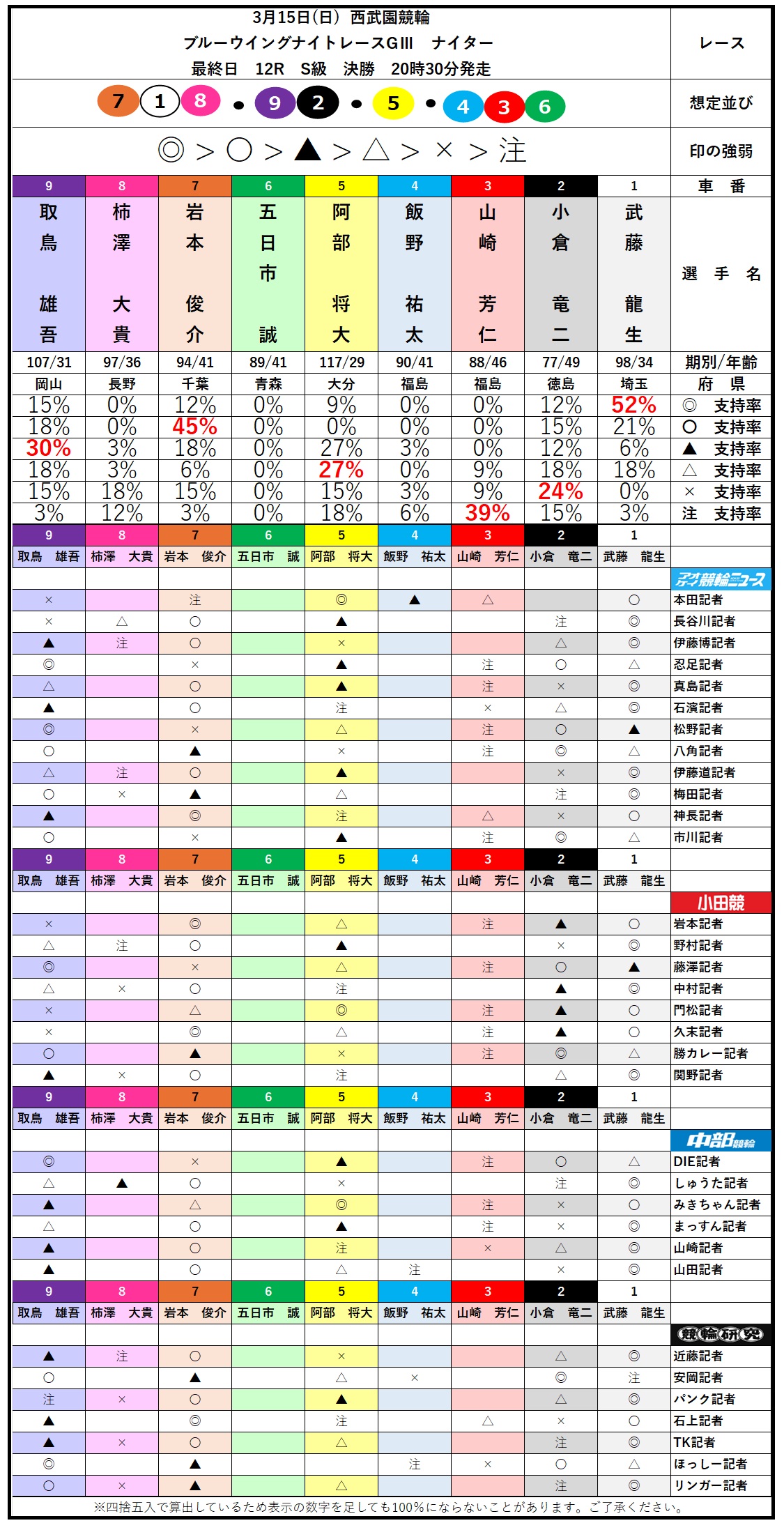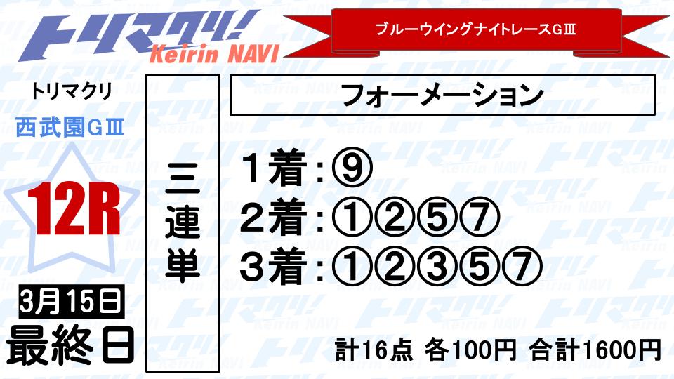 トリマクリ名物の記者一斉予想。3月15日(日)「西武園競輪 ブルーウイングナイトレースGⅢナイター」決勝の予想をお届けします!