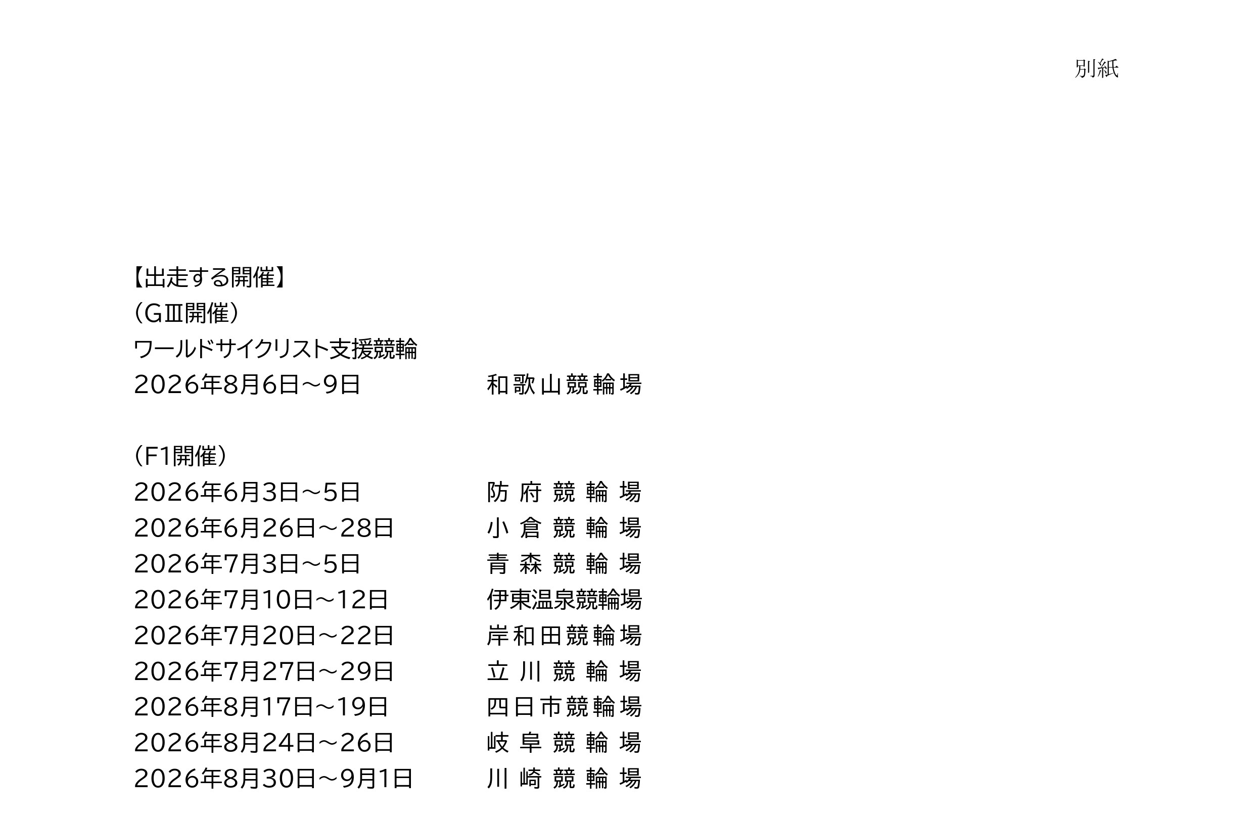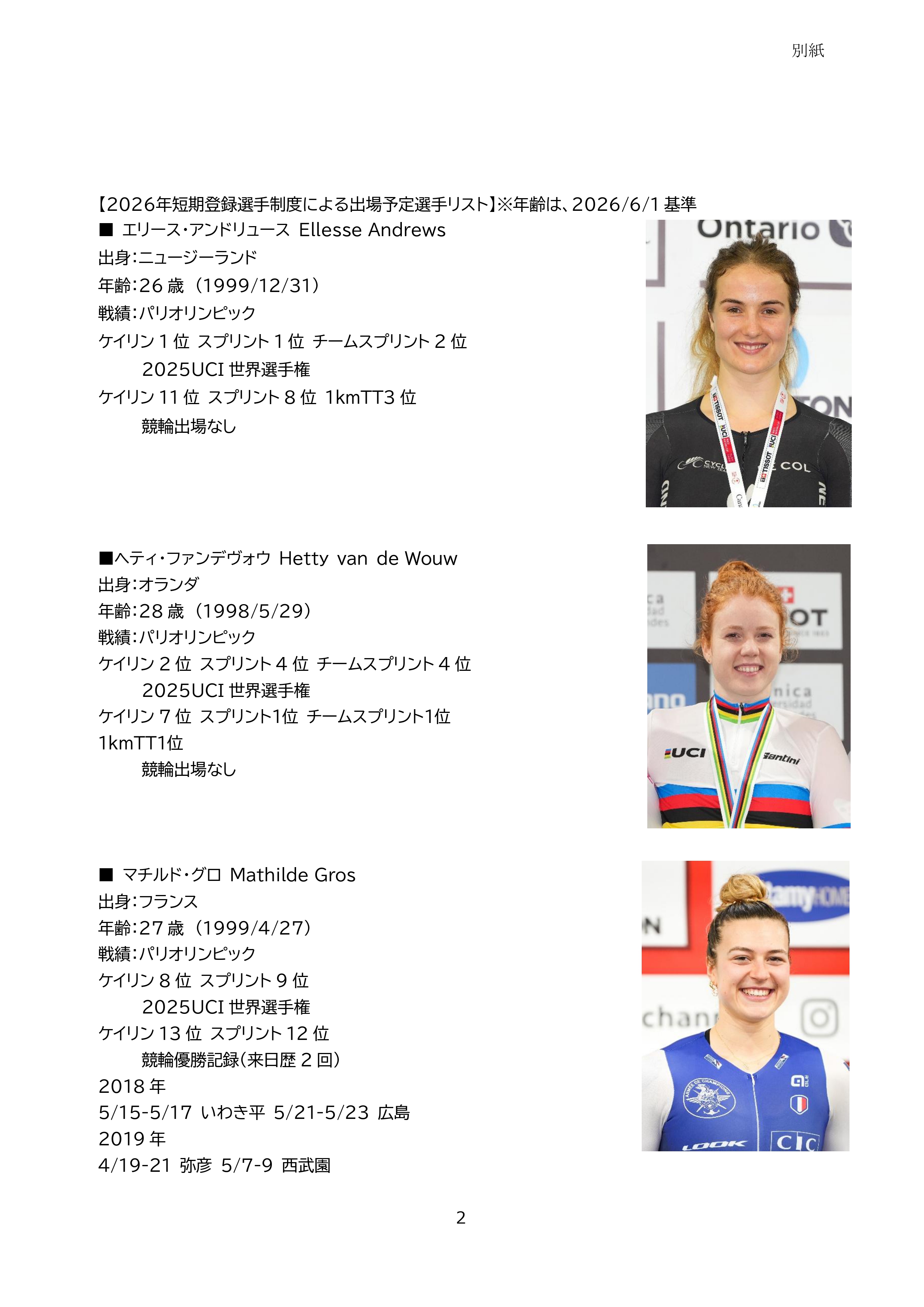 これを受けて、2026年度の競輪ワールドシリーズおよびワールドサイクリスト支援競輪(GⅢ)に出走する外国人選手を、別紙のとおり決定いたしましたので、併せて発表いたします。