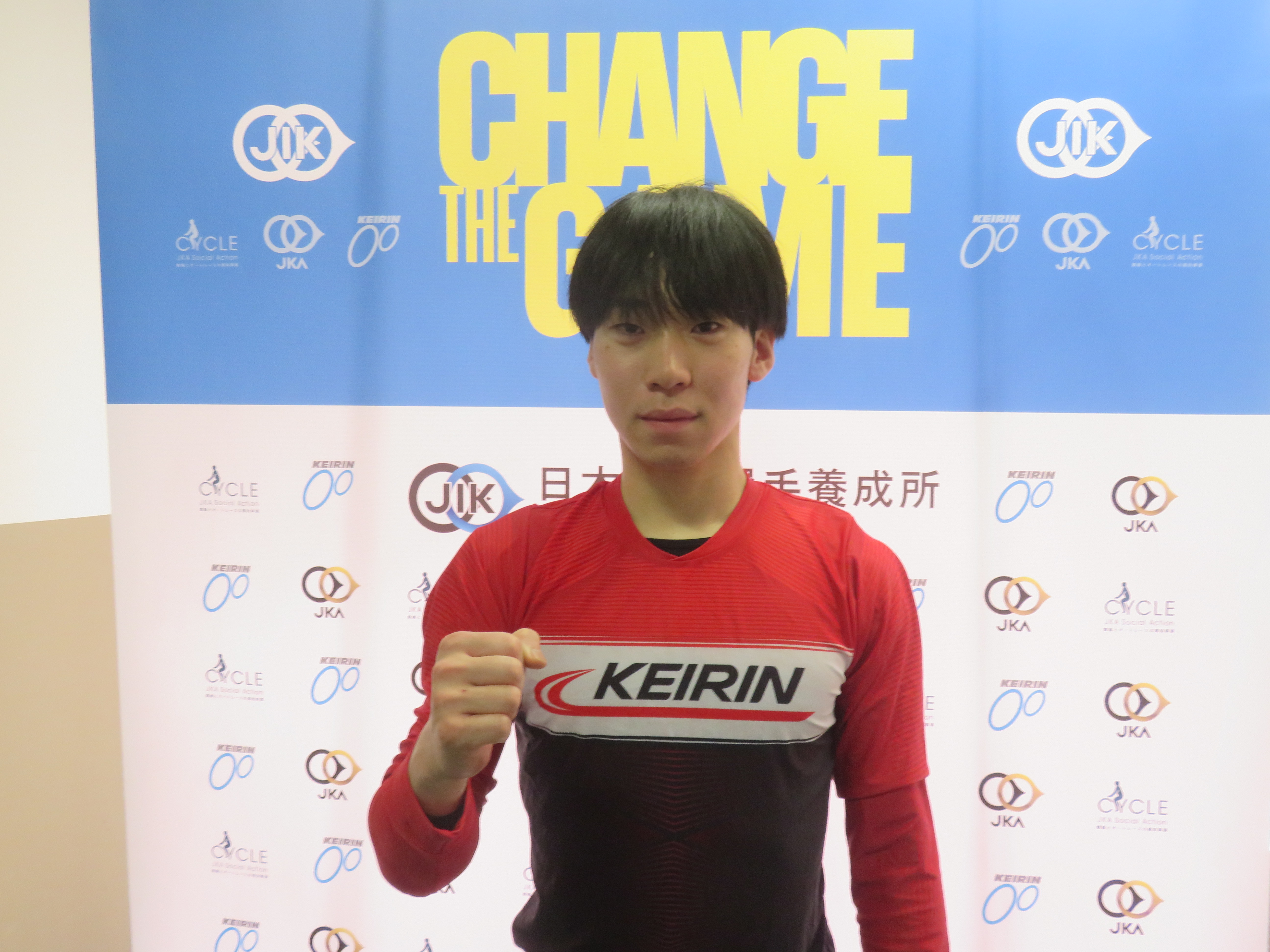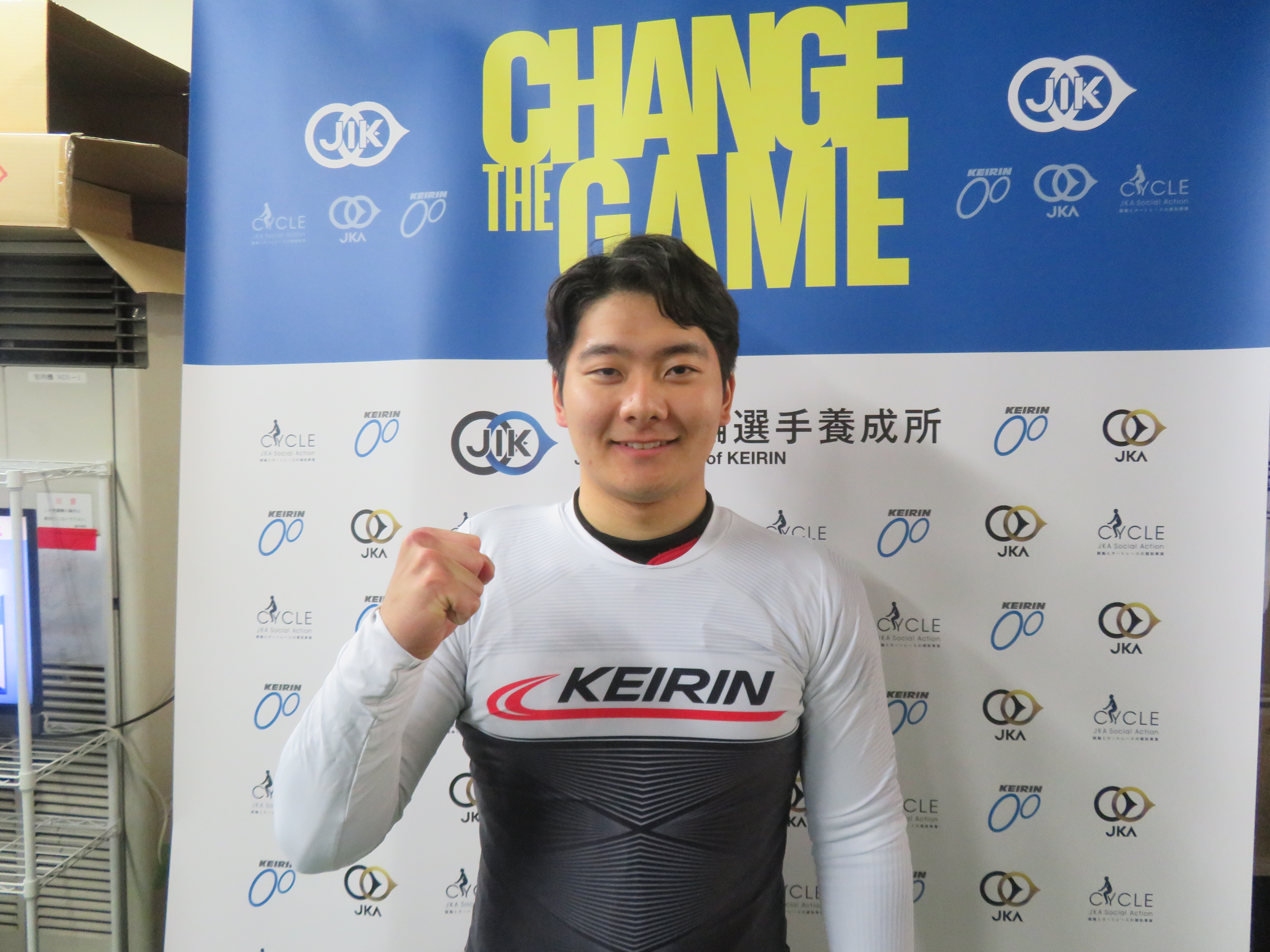 「着に残れるように33バンクだし前々に組み立てました。途中で浮いてしまったのがもったいなかった。4番車の森田瑞基さんの後ろから追い込んでも良かったです。競技は高校1年からで知り合いの繋がりで始めました。サッカーをやっていたけどプロになるのは難しいなって…(笑)。ロードを目指していたけど競輪選手を見てこっちの道を選びました。中長距離をやっていて選手を目指したのが高校2年生。高校3年生からは選手になるに向けて1kmをやってました。地脚でダッシュが弱点なので強化したい。養成所ではとにかく量をやっていましたが卒業してからは質の高い練習をやりたいです。新山響平選手(青森107期)のような華のある先行選手になりたい。獲りたいタイトルが寛仁親王牌なのは、タイム競技が好きで全プロ競技から繋がる大会だからです。ゴールデンキャップを取りたかったけど良い養成所生活でした」。