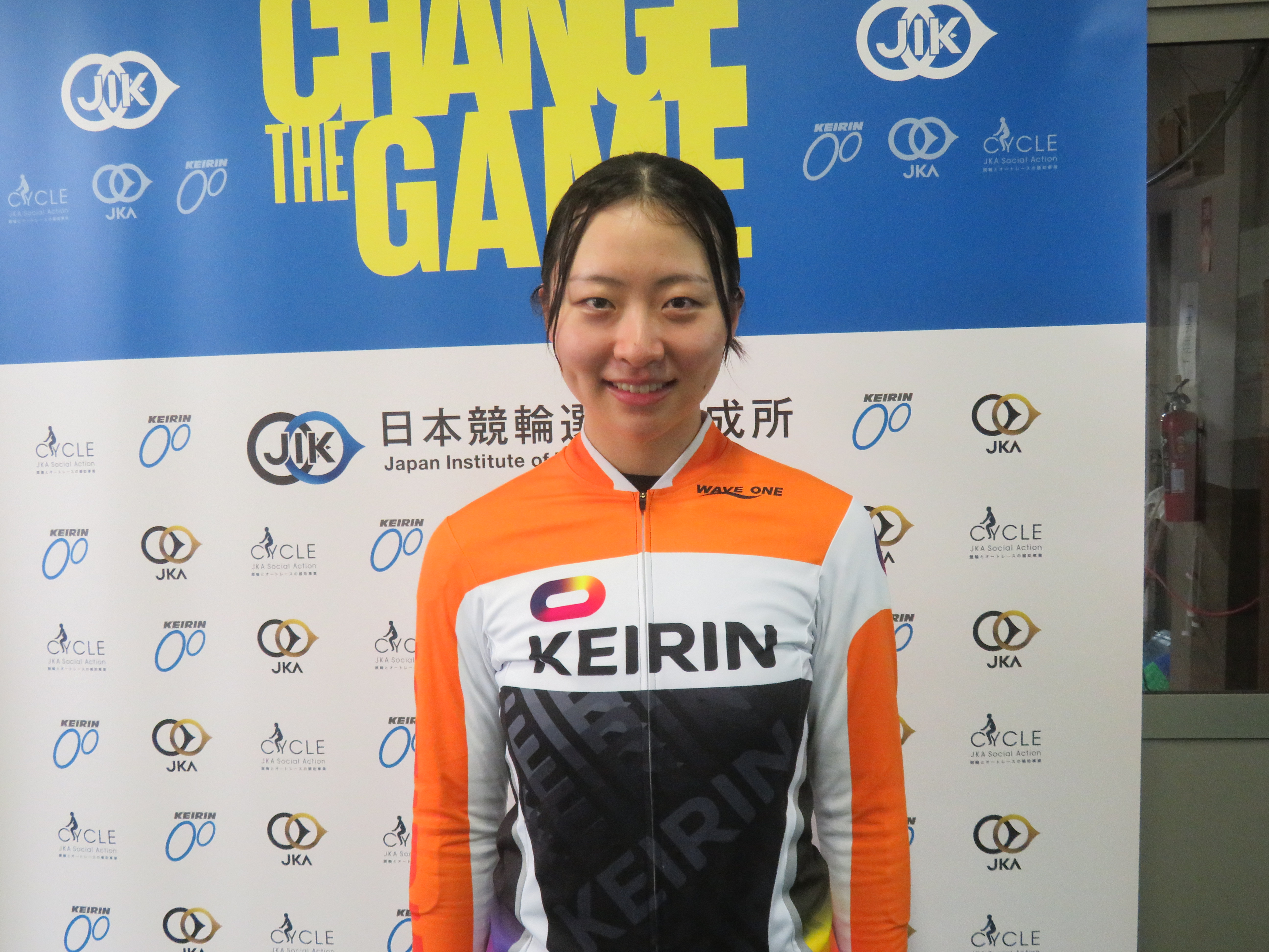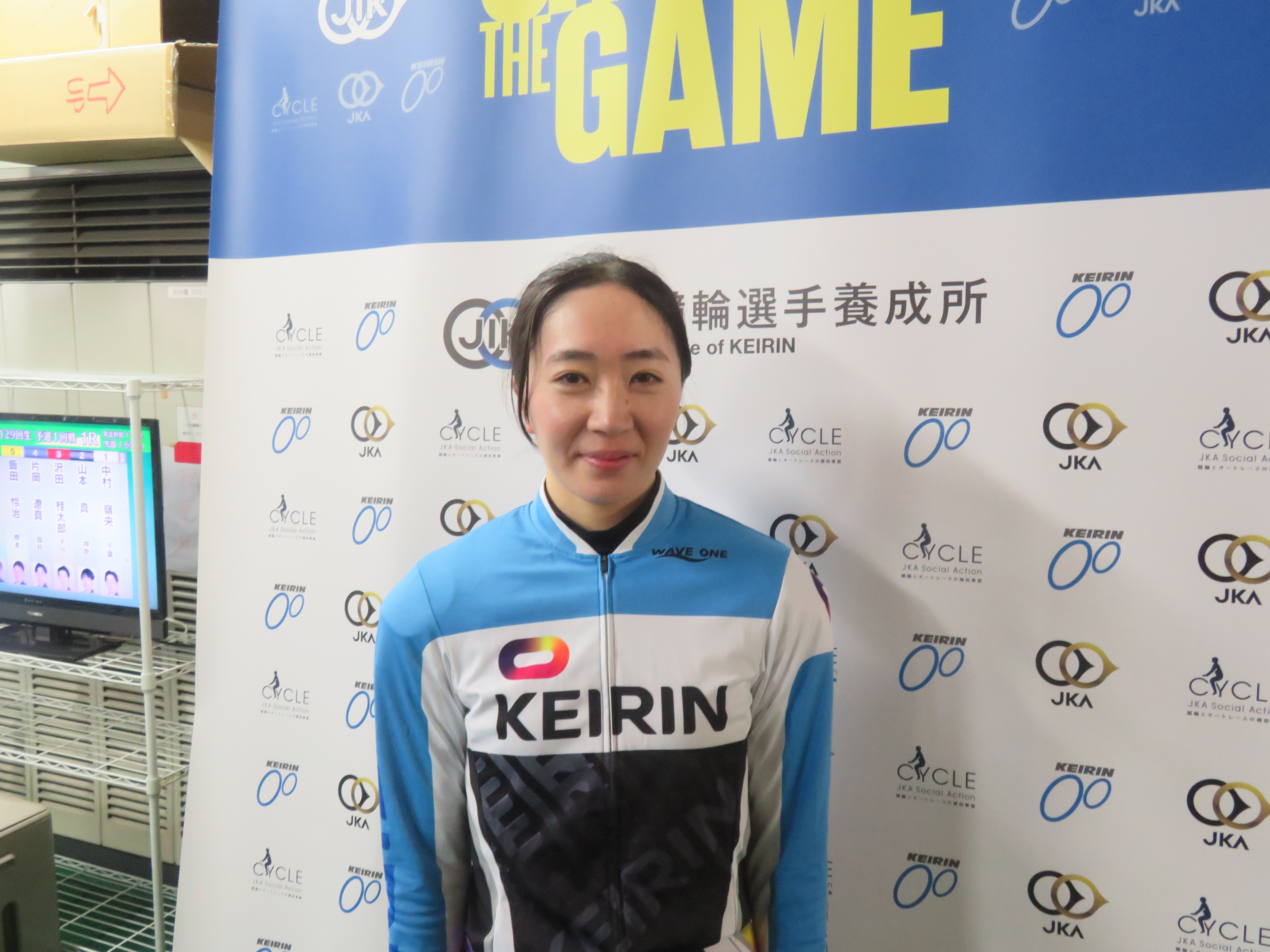 「JRで車内販売をやっていました。純粋に競輪が好きで車券を買ってもいたしファンでした。好きな選手は清水裕友選手(山口105期)です。学生時代はバレーボールをやっていて養成所は3回目で合格しました。追走が得意ですが、自力が無いので力を付けたいです。レースは想定していた通りで3番の伊藤梨里花さんを追走しようと思っていました」。