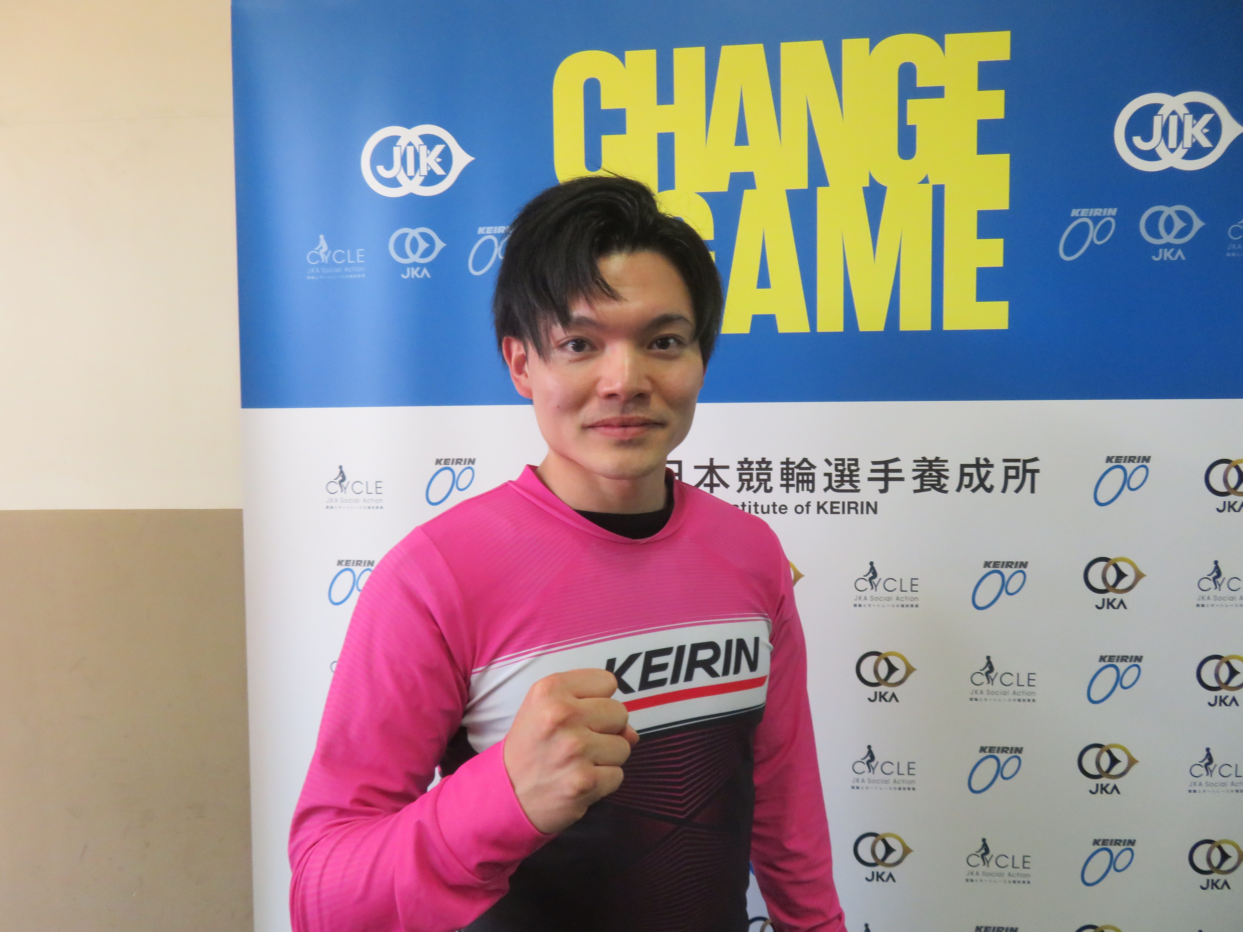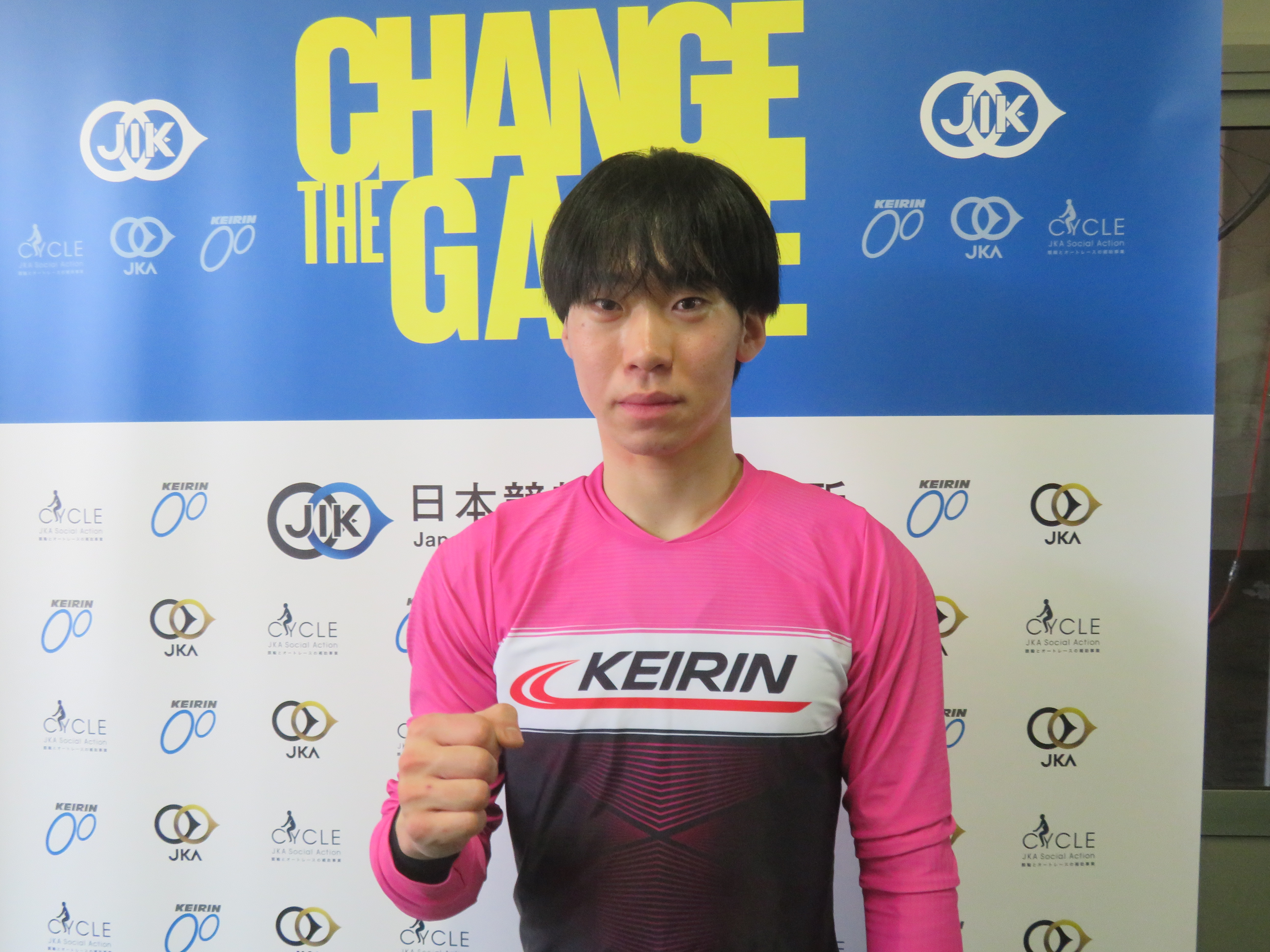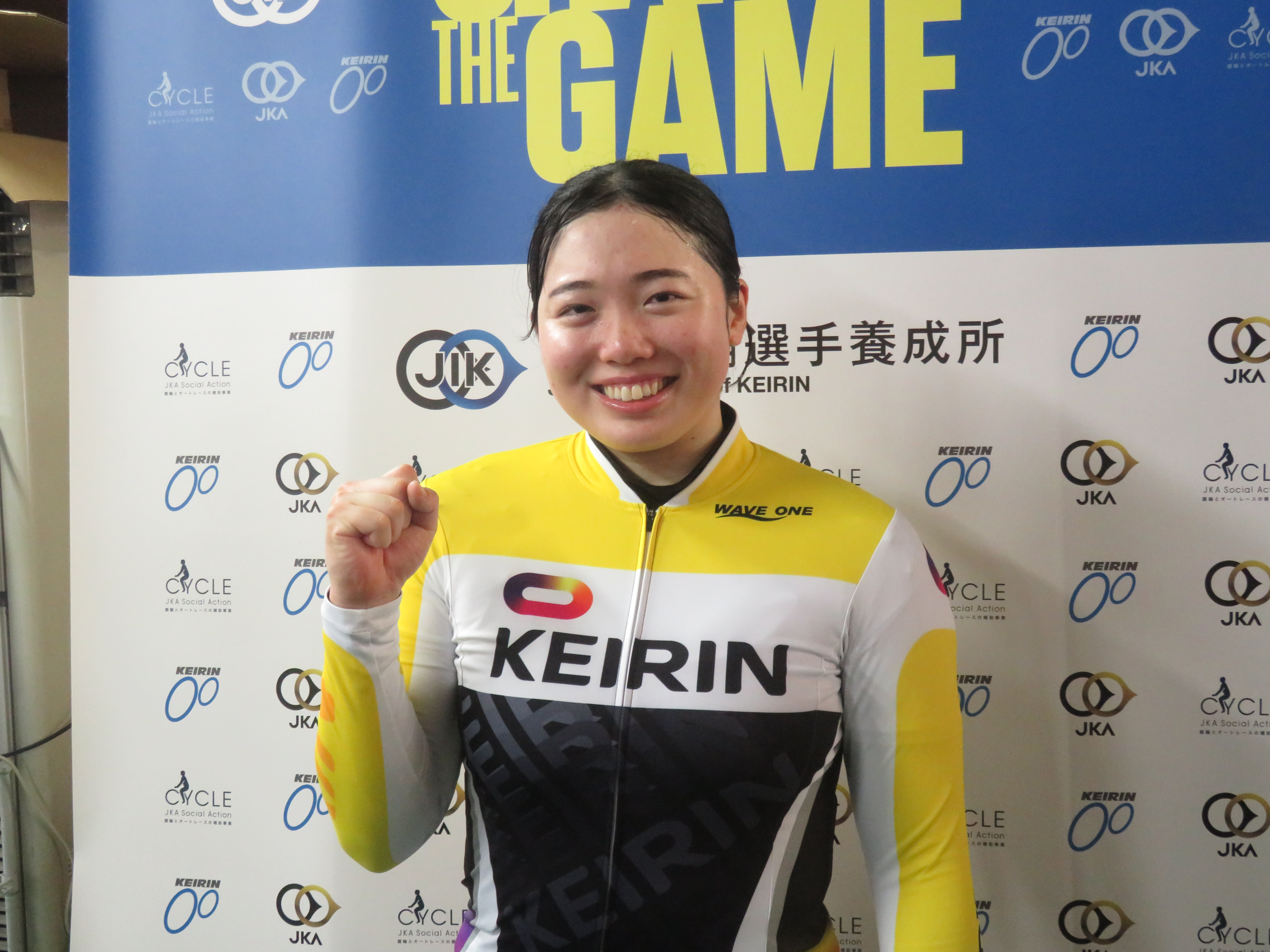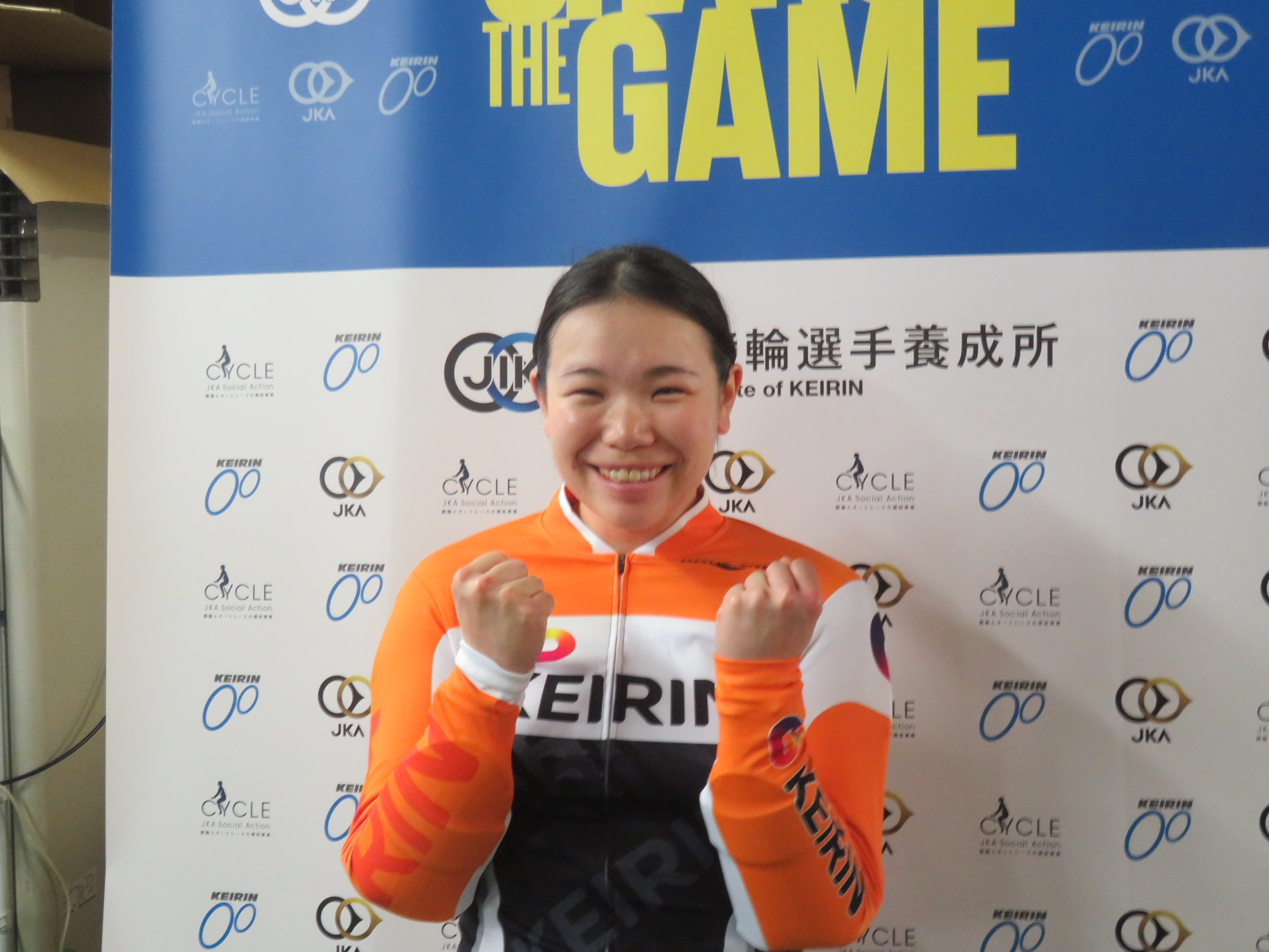 「2023年までは中距離でナショナルチームに居てパリオリンピックを目指していました。一度競技からは離れたけどまだ頑張りたいと思ってなったことのない競輪選手をラストチャンスで受験しました。もしダメだったら違う仕事か競技のコーチをやろうと思っていました。JKAでバイトしていましたがそれも師匠の飯田義弘さん(東京44期・引退)に相談して働いていました。結婚しているので登録は静岡ですが師匠は飯田さんです。地脚でダッシュやスピードがないので自分の強みを活かせるように走りたい。身近に色々聞ける人が居て良い環境だし、鈴木奈央選手(静岡110期)のように冷静に立ち回れる選手になりたいです。中距離は挽回出来るチャンスがたくさんあるけど、競輪は勝負所が少ないし難しい」。