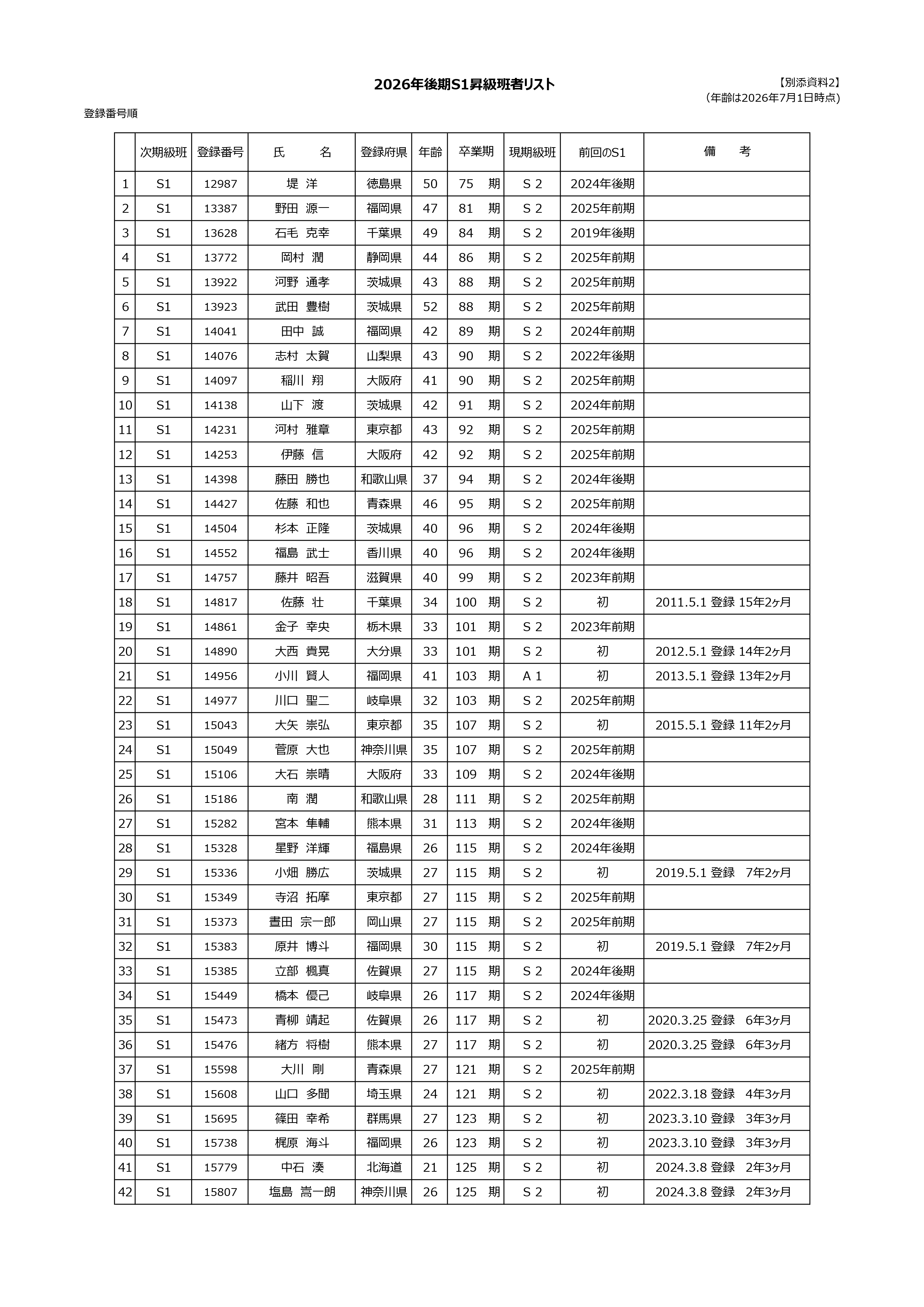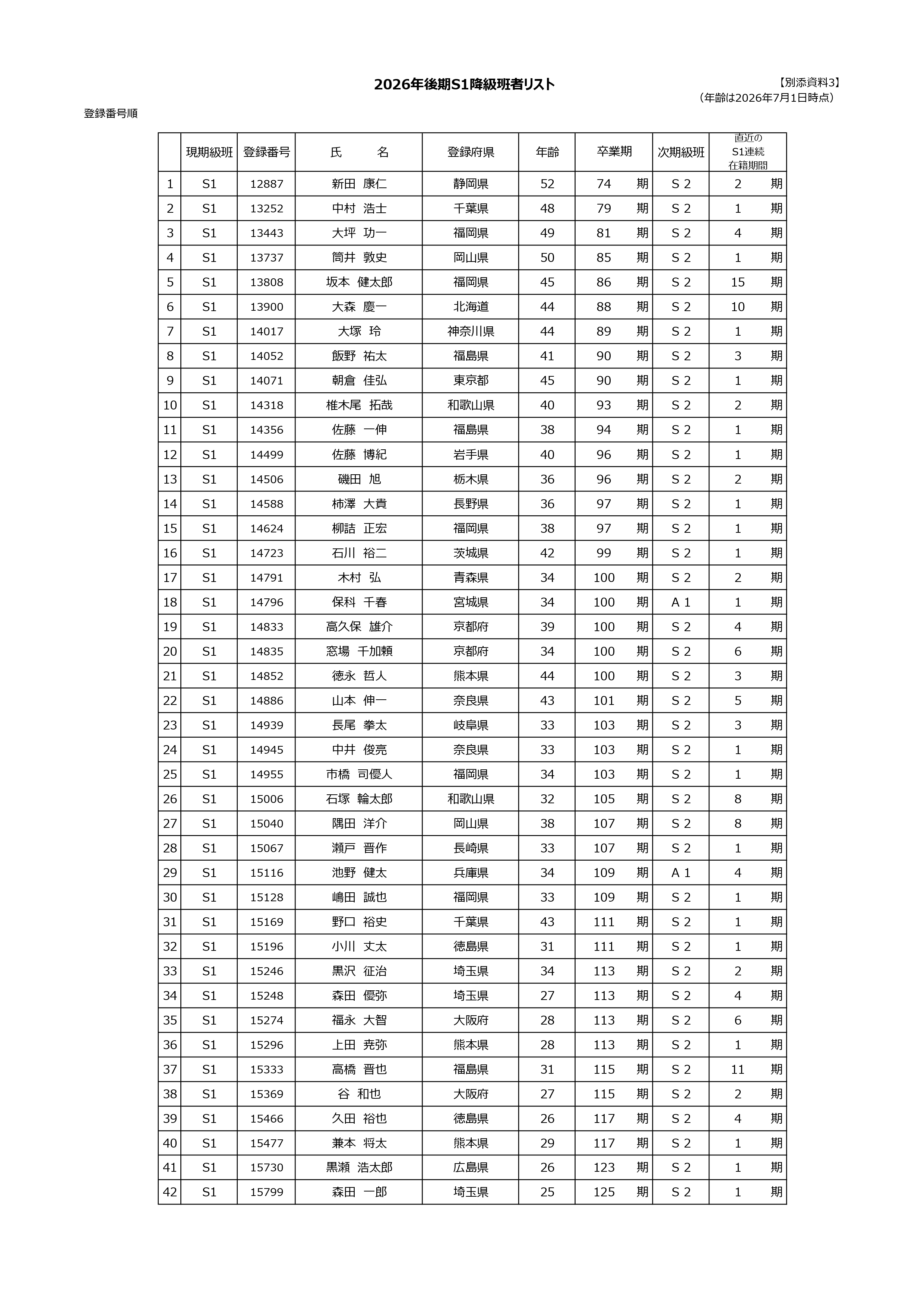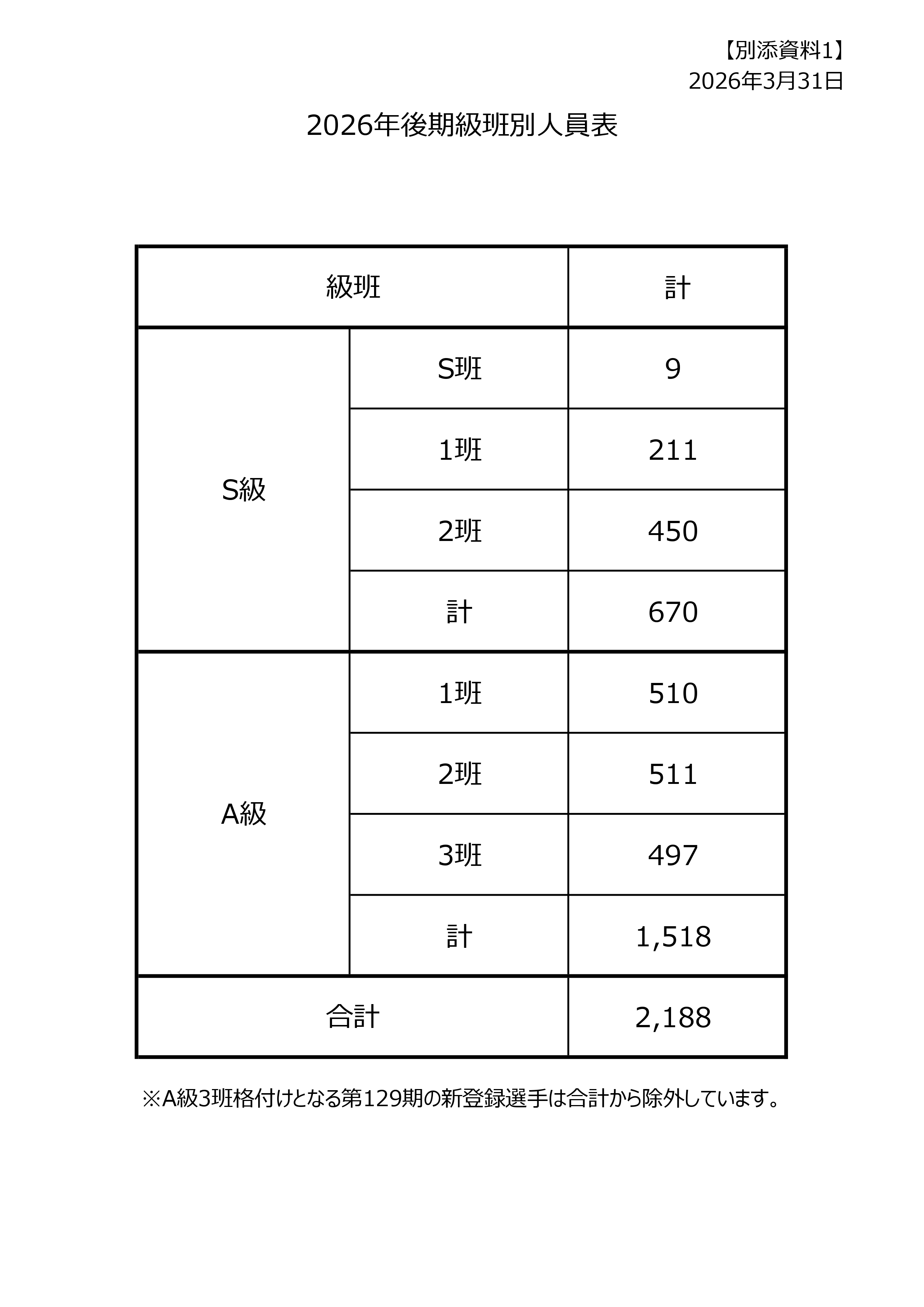 2026年後期適用級班が決定しましたので、別添のとおりお知らせいたします。2026年後期における級班は、2025年後期(2025年7~12月)の競走成績に基づき決定したものです。