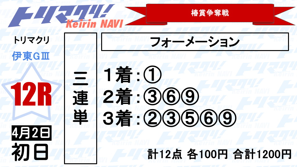 本命支持率2位の②深谷知広と番手の⑥渡邉雅也との争いを狙う車券。