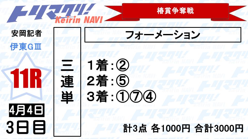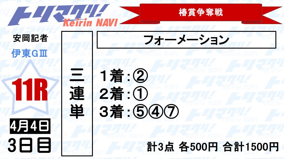 ②吉田拓矢が安定した走り。ここもスッと流れを掴んでの一撃決める。⑤神山拓弥も渋太く喰らい付きそうだが⑥藤原憲征までは厳しいかも。デキ光る①町田太我の粘り込みと、巧者⑦佐藤慎太郎、④小川真太郎も押さえる。