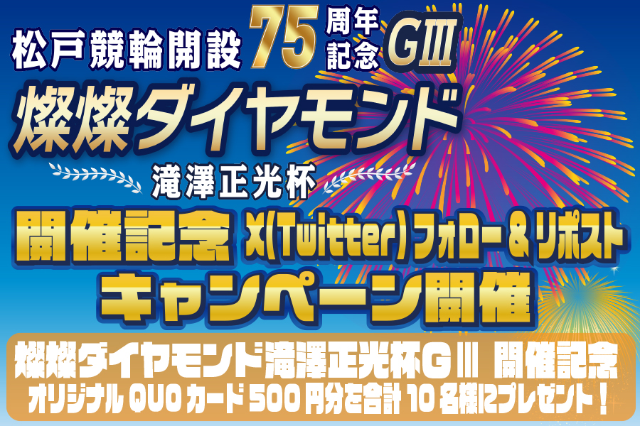 松戸競輪 開設75周年記念GⅢの開催を記念してX(Twitter)フォロー&リポストキャンペーン開催!!